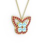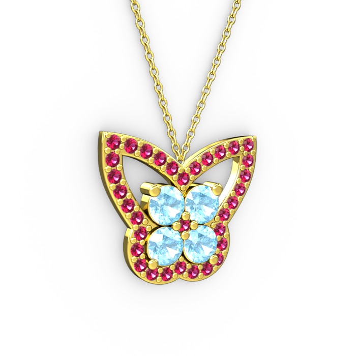Rodolit garnet ve akuamarin 18 ayar altın kolye (40 cm gümüş rolo zincir)