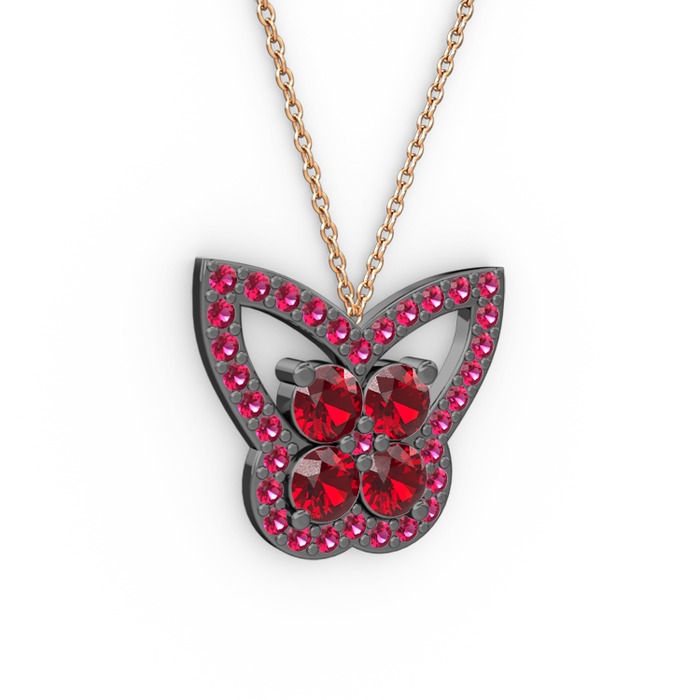 Rodolit garnet ve garnet 925 ayar siyah rodyum kaplama gümüş kolye (40 cm rose altın rolo zincir)