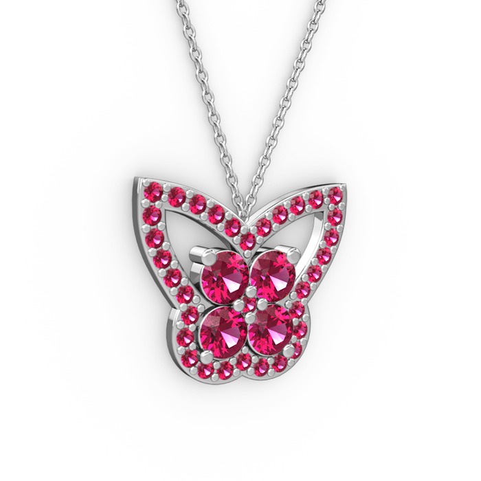 Rodolit garnet 925 ayar gümüş kolye (40 cm beyaz altın rolo zincir)