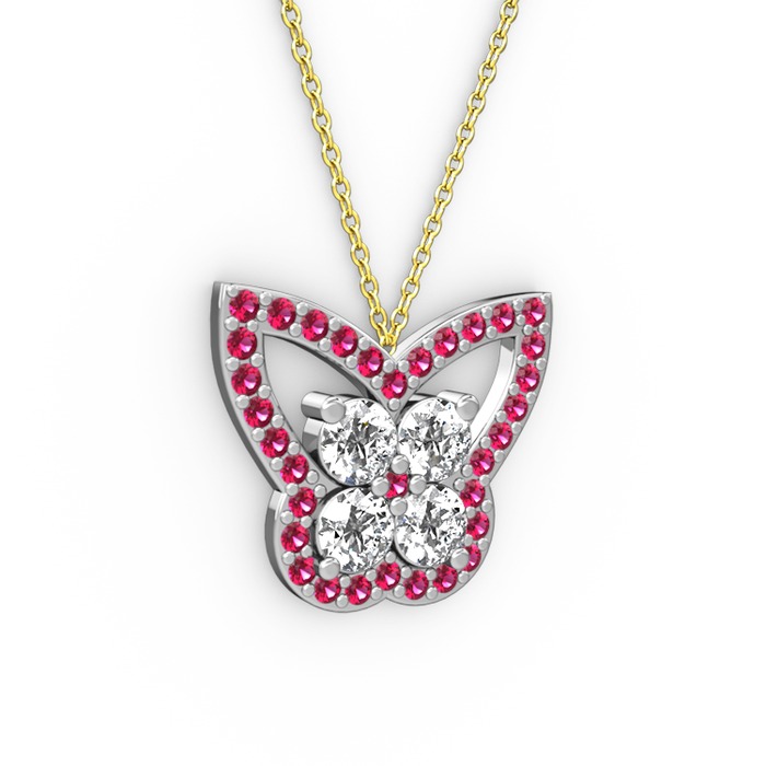 Rodolit garnet ve pırlanta 8 ayar beyaz altın kolye (0.96 karat, 40 cm altın rolo zincir)