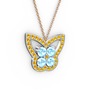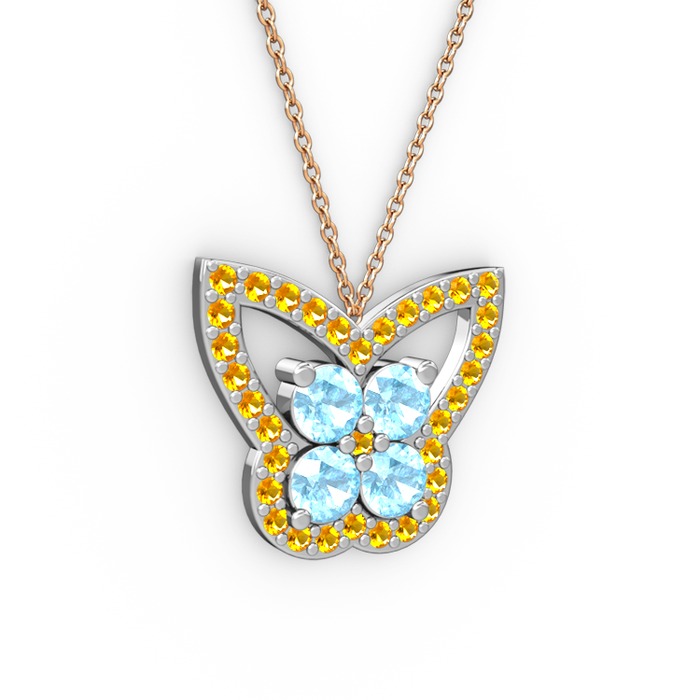 Sitrin ve akuamarin 14 ayar beyaz altın kolye (40 cm rose altın rolo zincir)