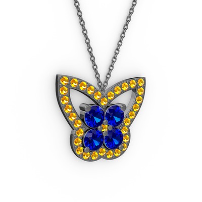Sitrin ve lab safir 925 ayar siyah rodyum kaplama gümüş kolye (40 cm gümüş rolo zincir)