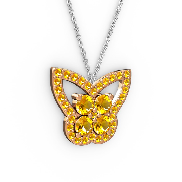Sitrin 925 ayar rose altın kaplama gümüş kolye (40 cm beyaz altın rolo zincir)