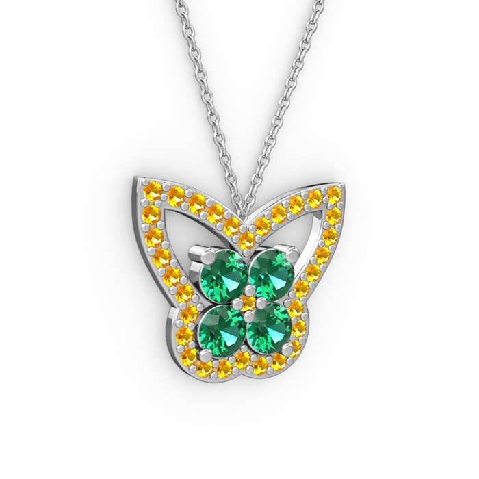 Sitrin ve yeşil kuvars 14 ayar beyaz altın kolye (40 cm beyaz altın rolo zincir)