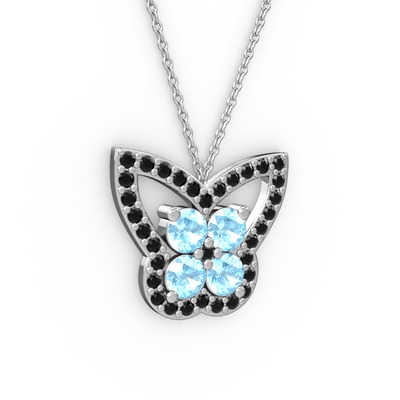 Siyah zirkon ve akuamarin 14 ayar beyaz altın kolye (40 cm gümüş rolo zincir)