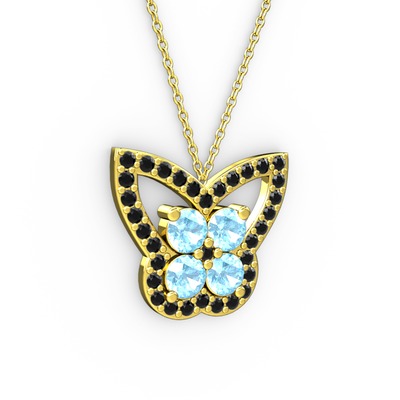 Siyah zirkon ve akuamarin 8 ayar altın kolye (40 cm gümüş rolo zincir)