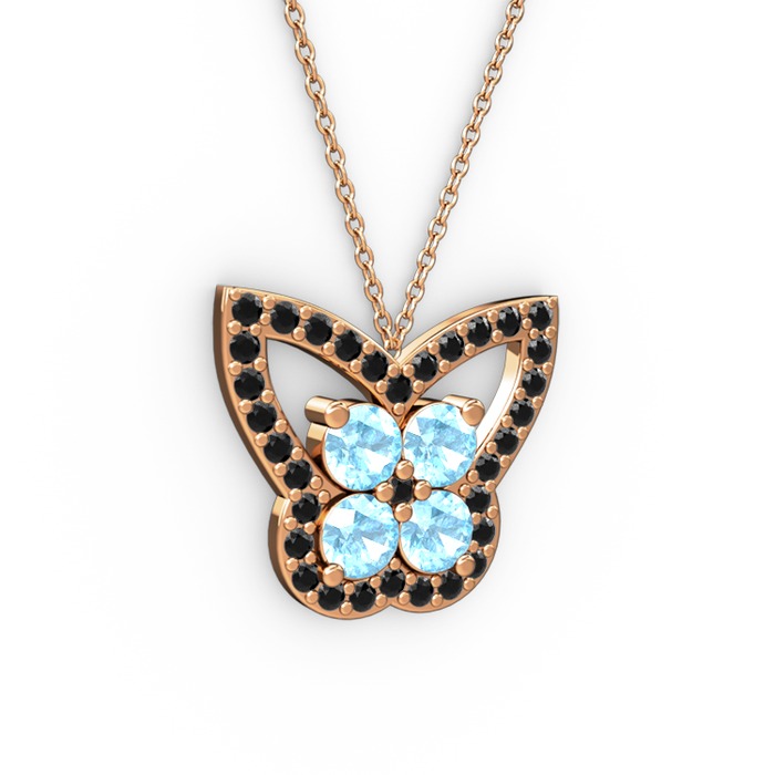 Siyah zirkon ve akuamarin 8 ayar rose altın kolye (40 cm rose altın rolo zincir)