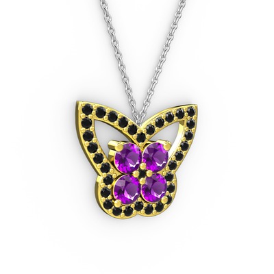 Siyah zirkon ve ametist 14 ayar altın kolye (40 cm beyaz altın rolo zincir)