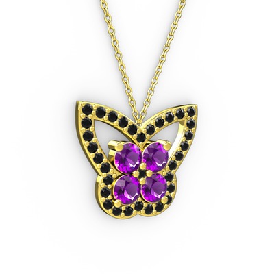 Siyah zirkon ve ametist 8 ayar altın kolye (40 cm altın rolo zincir)