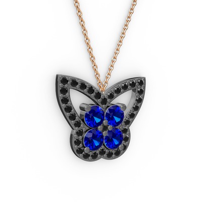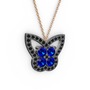 Siyah zirkon ve lab safir 925 ayar siyah rodyum kaplama gümüş kolye (40 cm rose altın rolo zincir)