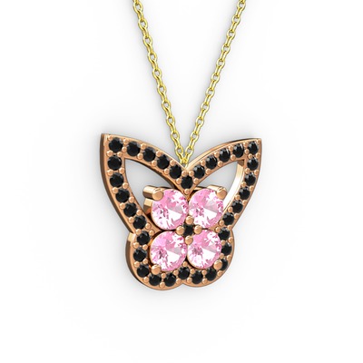 Siyah zirkon ve pembe kuvars 8 ayar rose altın kolye (40 cm altın rolo zincir)