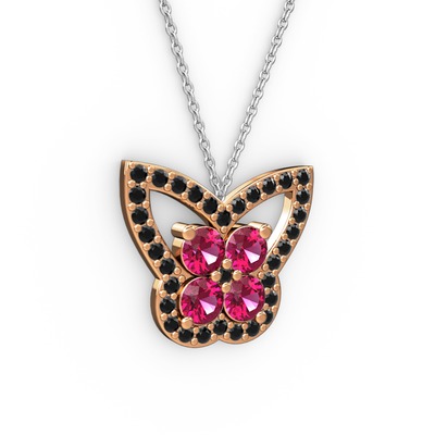 Siyah zirkon ve rodolit garnet 8 ayar rose altın kolye (40 cm gümüş rolo zincir)