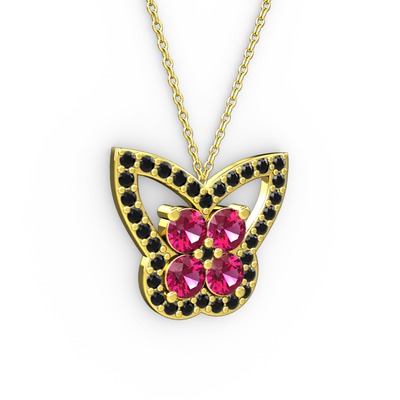 Siyah zirkon ve rodolit garnet 925 ayar altın kaplama gümüş kolye (40 cm gümüş rolo zincir)