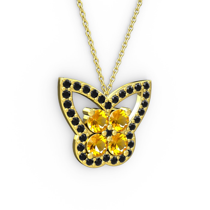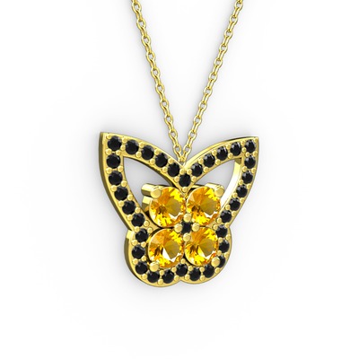 Siyah zirkon ve sitrin 18 ayar altın kolye (40 cm altın rolo zincir)