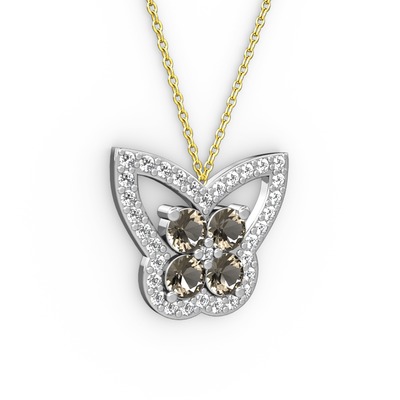 Swarovski ve dumanlı kuvars 8 ayar beyaz altın kolye (40 cm altın rolo zincir)