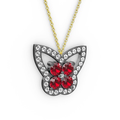 Swarovski ve garnet 925 ayar siyah rodyum kaplama gümüş kolye (40 cm gümüş rolo zincir)