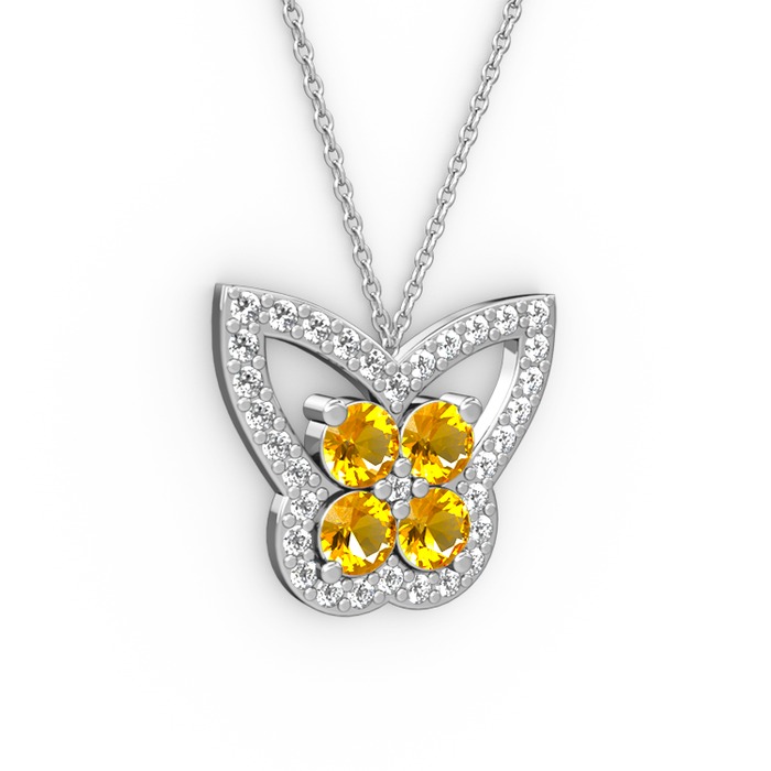 Swarovski ve sitrin 8 ayar beyaz altın kolye (40 cm gümüş rolo zincir)