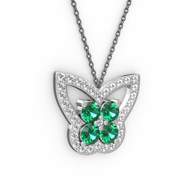 Swarovski ve yeşil kuvars 8 ayar beyaz altın kolye (40 cm gümüş rolo zincir)
