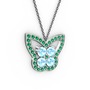 Yeşil kuvars ve akuamarin 8 ayar beyaz altın kolye (40 cm gümüş rolo zincir)