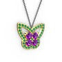 Yeşil kuvars ve ametist 18 ayar altın kolye (40 cm gümüş rolo zincir)