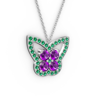 Yeşil kuvars ve ametist 925 ayar gümüş kolye (40 cm gümüş rolo zincir)