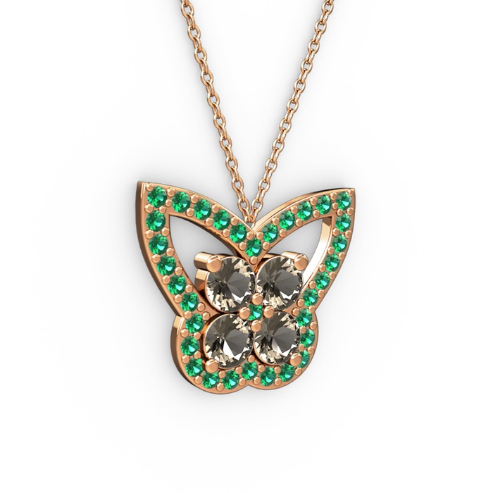 Yeşil kuvars ve dumanlı kuvars 8 ayar rose altın kolye (40 cm rose altın rolo zincir)
