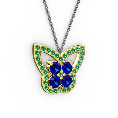 Yeşil kuvars ve lab safir 18 ayar altın kolye (40 cm gümüş rolo zincir)