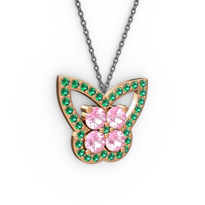 Yeşil kuvars ve pembe kuvars 8 ayar rose altın kolye (40 cm gümüş rolo zincir)