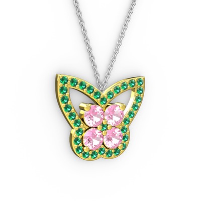 Yeşil kuvars ve pembe kuvars 925 ayar altın kaplama gümüş kolye (40 cm gümüş rolo zincir)
