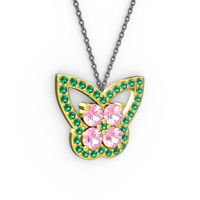 Yeşil kuvars ve pembe kuvars 925 ayar altın kaplama gümüş kolye (40 cm gümüş rolo zincir)