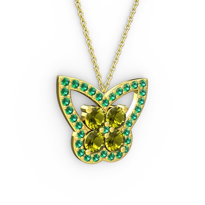 Yeşil kuvars ve peridot 925 ayar altın kaplama gümüş kolye (40 cm altın rolo zincir)