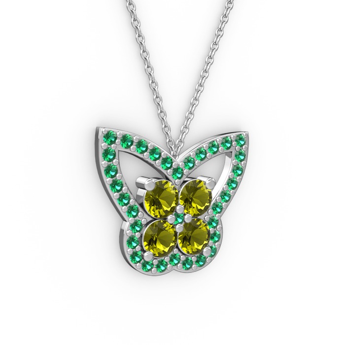 Yeşil kuvars ve peridot 925 ayar gümüş kolye (40 cm beyaz altın rolo zincir)