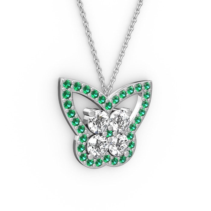 Yeşil kuvars ve pırlanta 18 ayar beyaz altın kolye (0.96 karat, 40 cm beyaz altın rolo zincir)