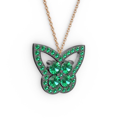 Yeşil kuvars 925 ayar siyah rodyum kaplama gümüş kolye (40 cm gümüş rolo zincir)