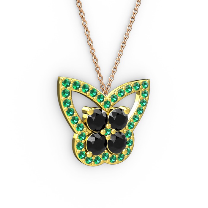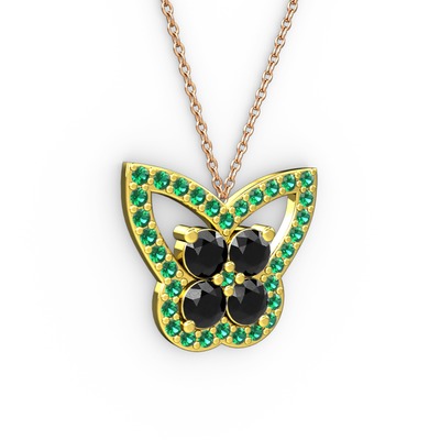 Yeşil kuvars ve siyah zirkon 14 ayar altın kolye (40 cm gümüş rolo zincir)