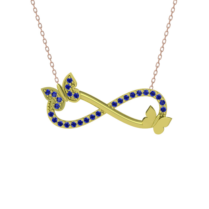 Kelebek ve Sonsuzluk İşaretilerinin birleşmesinden oluşan kolyemizle sonsuz saflık ve sevginizi yansıtın. Detaylı Bilgi
