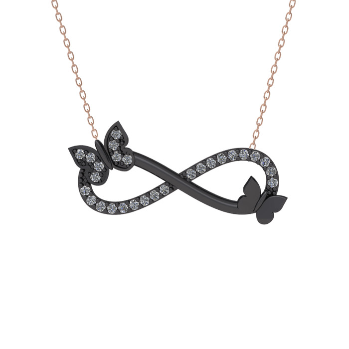 Kelebek ve Sonsuzluk İşaretilerinin birleşmesinden oluşan kolyemizle sonsuz saflık ve sevginizi yansıtın. Detaylı Bilgi