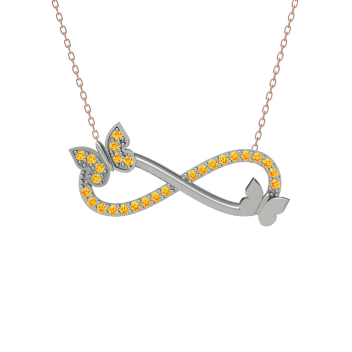 Kelebek ve Sonsuzluk İşaretilerinin birleşmesinden oluşan kolyemizle sonsuz saflık ve sevginizi yansıtın. Detaylı Bilgi