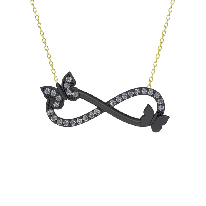 Kelebek ve Sonsuzluk İşaretilerinin birleşmesinden oluşan kolyemizle sonsuz saflık ve sevginizi yansıtın. Detaylı Bilgi
