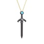 Akuamarin ve beyaz zirkon 925 ayar siyah rodyum kaplama gümüş kolye (40 cm gümüş rolo zincir)