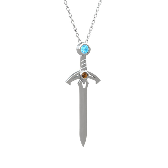 Akuamarin ve dumanlı kuvars 925 ayar gümüş kolye (40 cm beyaz altın rolo zincir)