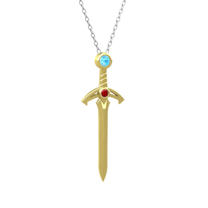 Akuamarin ve garnet 18 ayar altın kolye (40 cm gümüş rolo zincir)