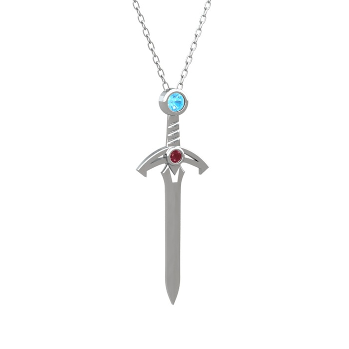 Akuamarin ve kök yakut 8 ayar beyaz altın kolye (40 cm beyaz altın rolo zincir)