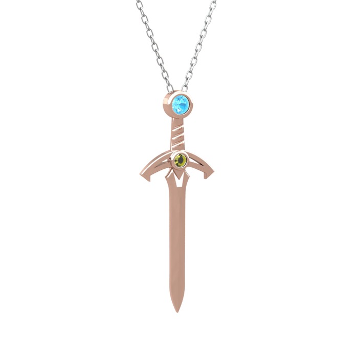 Akuamarin ve peridot 8 ayar rose altın kolye (40 cm beyaz altın rolo zincir)