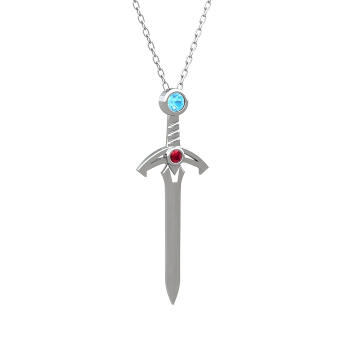 Akuamarin ve rodolit garnet 8 ayar beyaz altın kolye (40 cm beyaz altın rolo zincir)