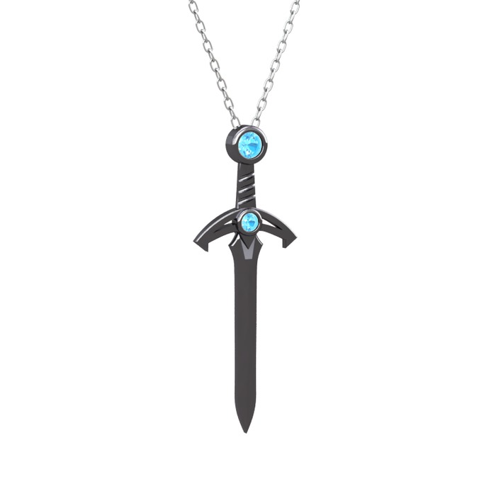 Akuamarin 925 ayar siyah rodyum kaplama gümüş kolye (40 cm gümüş rolo zincir)