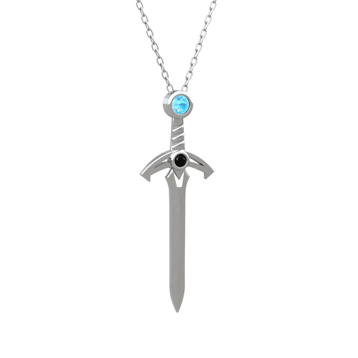 Akuamarin ve siyah zirkon 925 ayar gümüş kolye (40 cm beyaz altın rolo zincir)
