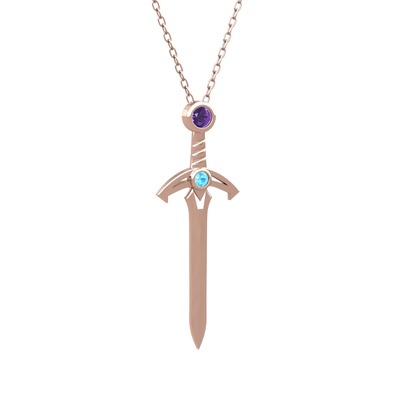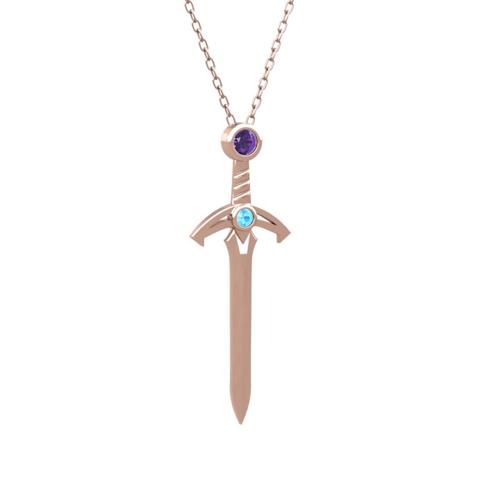 Ametist ve akuamarin 18 ayar rose altın kolye (40 cm gümüş rolo zincir)