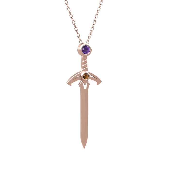 Ametist ve dumanlı kuvars 8 ayar rose altın kolye (40 cm rose altın rolo zincir)