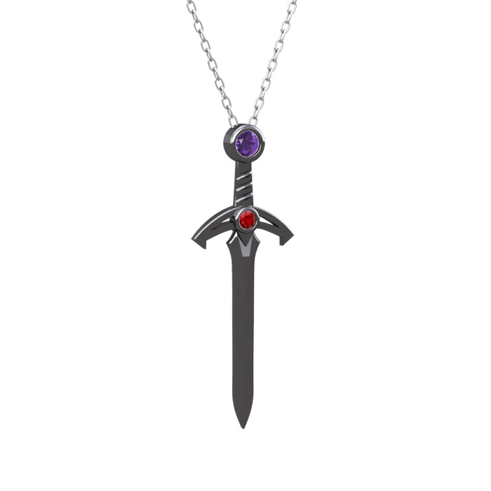Ametist ve garnet 925 ayar siyah rodyum kaplama gümüş kolye (40 cm beyaz altın rolo zincir)